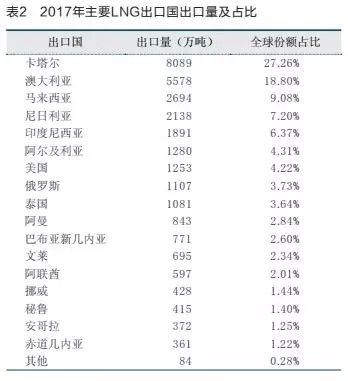 1 2017年全球LNG出口情況