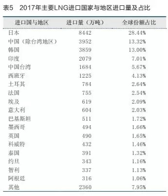 2017年全球LNG進(jìn)口情況